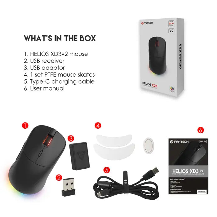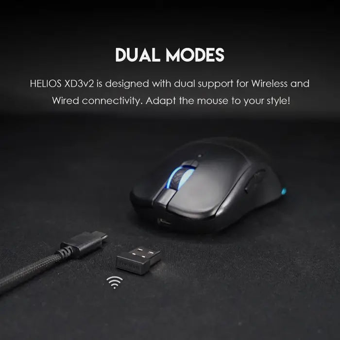 Miš HELIOS XD3 V2 SPACE EDITION može se koristiti bežično ili biti povezan kablom, a visokokvalitetne i izdržljive Kailh prekidače kojima je opremljen ovaj miš, koriste i profesionalni igrači u e-sportu.