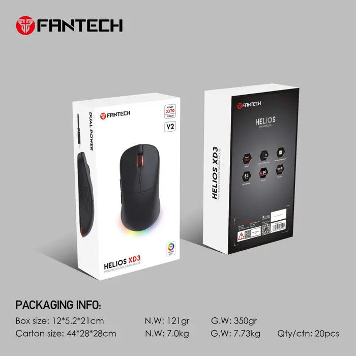 MIŠ GAMING FANTECH 19000 DPI DUAL ŽIČNI I BEŽIČNI HELIOS XD3 V2 CRNI