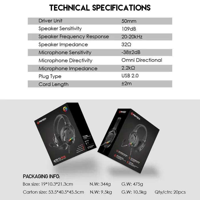 SLUŠALICE ŽIČNE GAMING FANTECH 7.1 ALTO HG26 CRNE