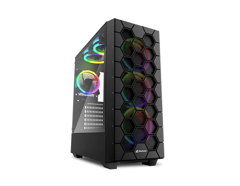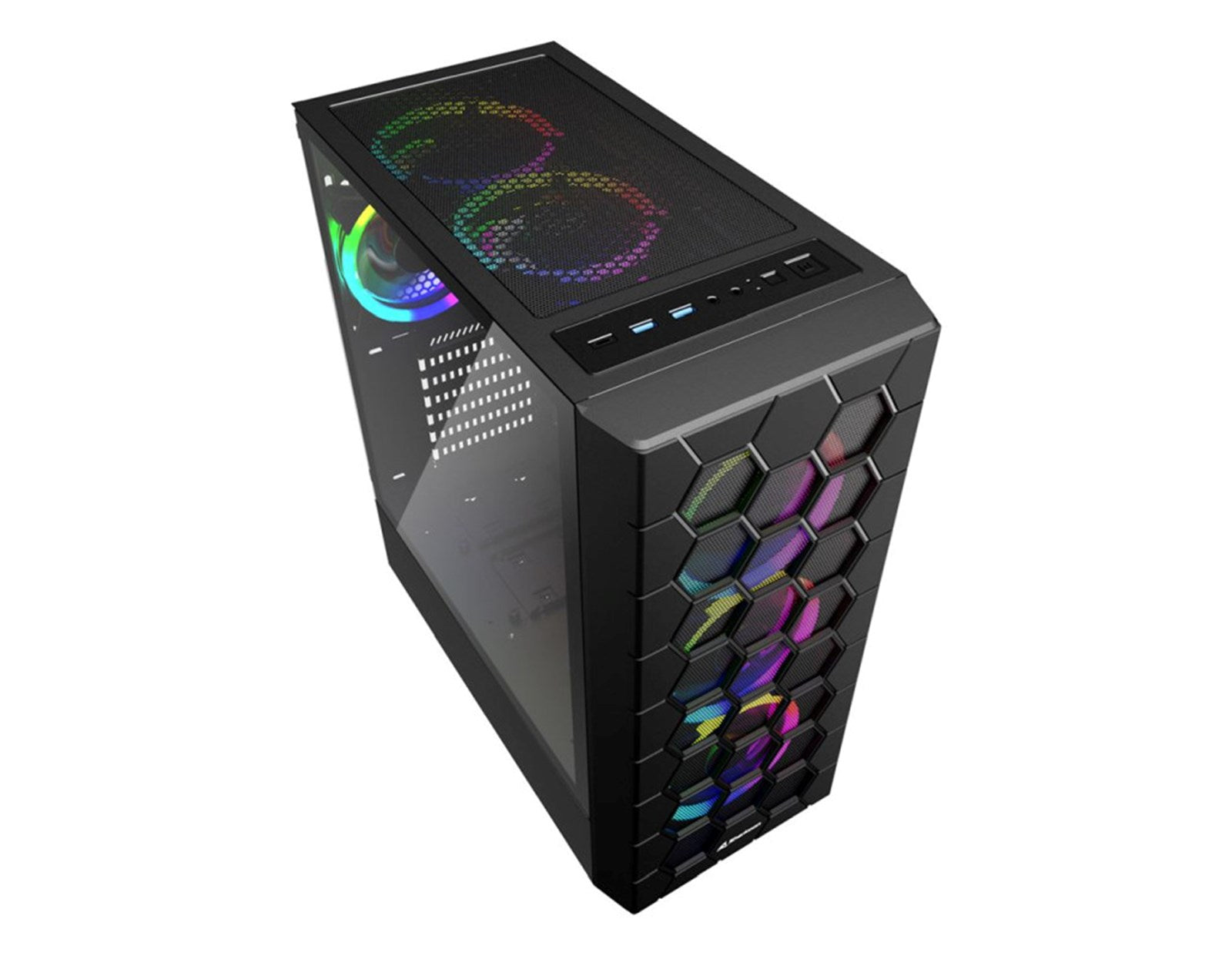 Impressive looks with high performance: The RGB Hex not only makes a cool appearance with the 3D hexagon design of its air-permeable front panel, but it also stays cool - no matter how hot the game gets. This is ensured thanks to the six pre-installed fans, which, in addition, are fully RGB addressable. Furthermore, the midi-ATX case has plenty of space for hardware as well as a modern USB Type-C 3.2 Gen 2 port and a tempered glass side panel.