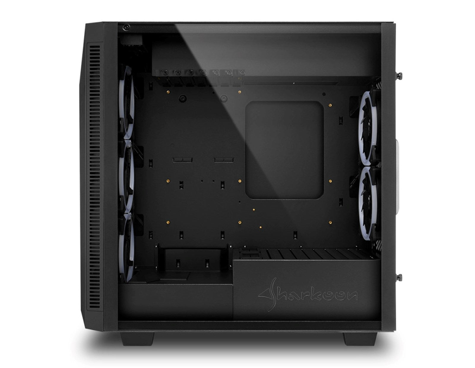 Specifications General - Form Factor: ATX - Expansion Slots: 7 - Interior Painting: Yes - Tool-free Devices Installation: Yes - Cable Management System: Yes - Side Panel: Tempered Glass